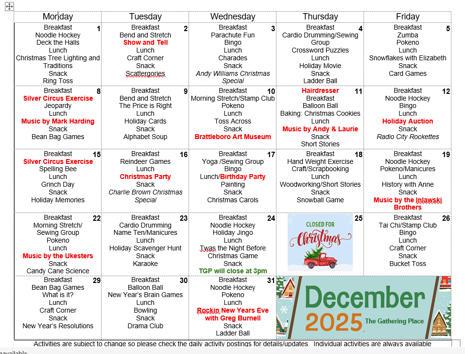 For additional information please contact The Gathering Place by calling 802-254-6559 or email info@gatheringplacevt.org